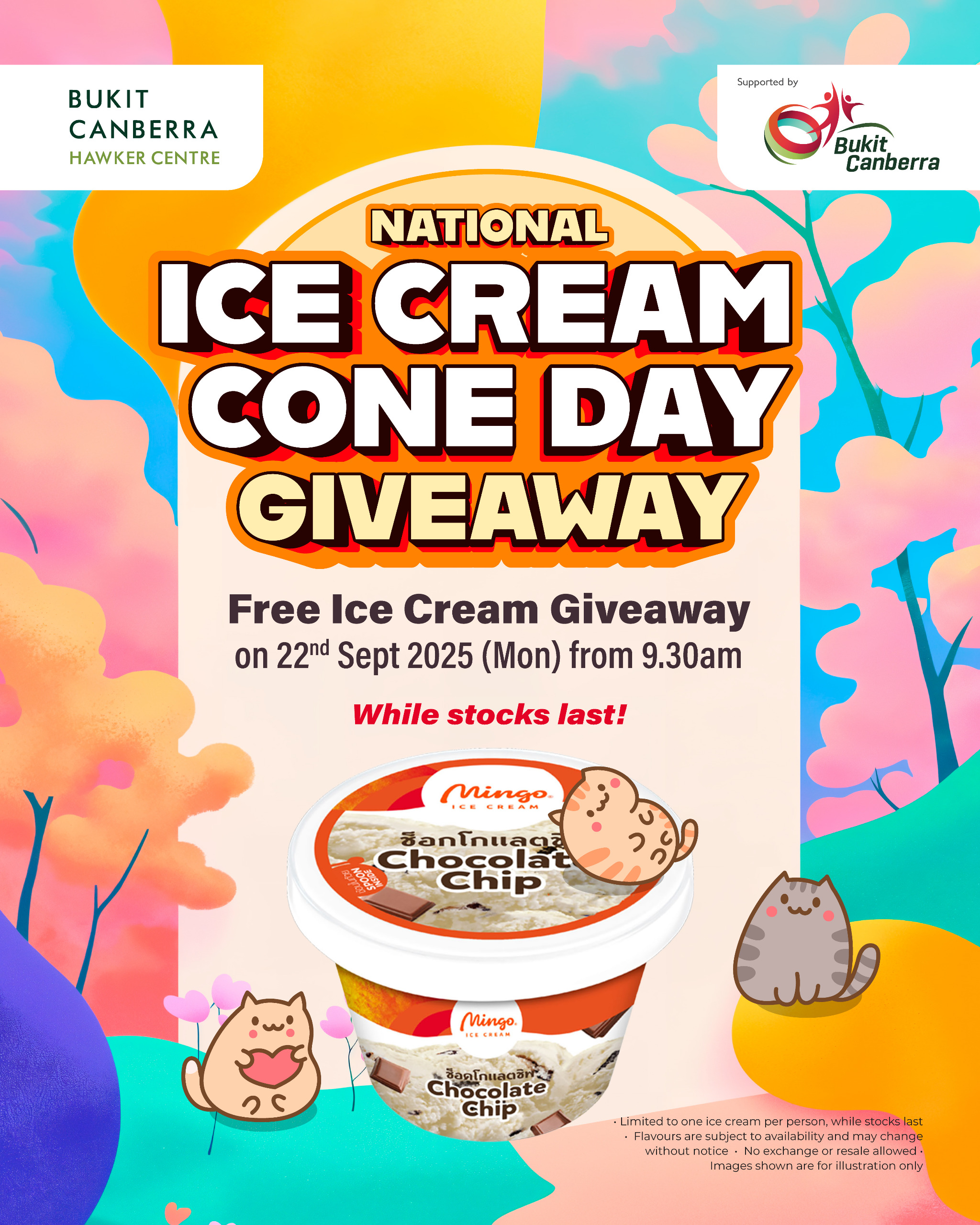 Weโre celebrating in the sweetest way possible, with FREE ice cream at Bukit Canberra Hawker Centre! ๐ Date: 22 September 2025 (Monday) ๐ค Time: From 9:30am ๐ Location: B